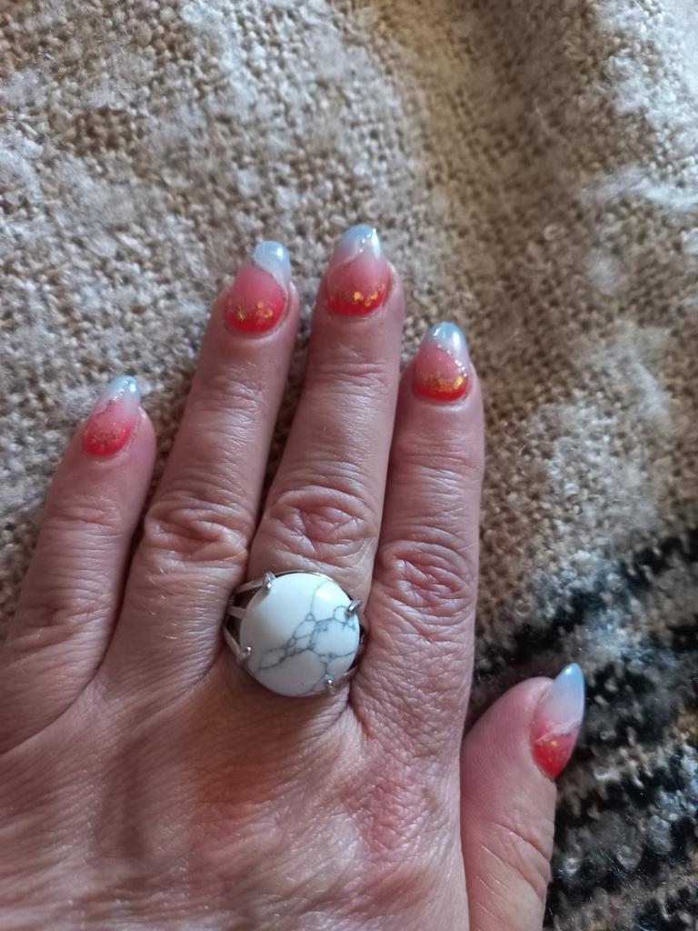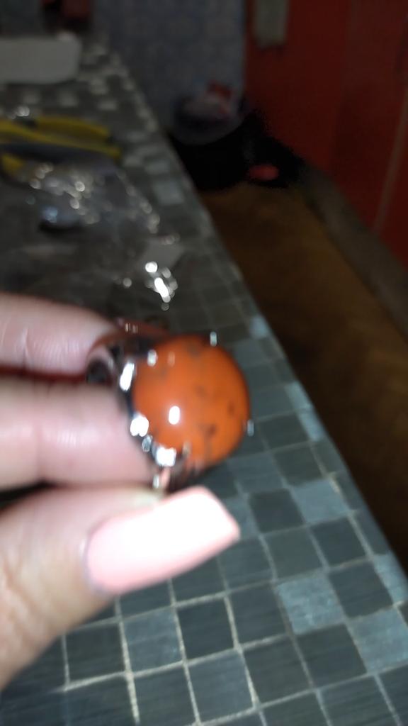 The ring is spectacular, “prominent”. It looks like a natural stone... It’s a pity, only, there are no veins or spots on my terracotta stone. Size 19 in a natural, unbent state. Thank you! I would have ordered more in other colors, but it’s a pity, we’ve run out...