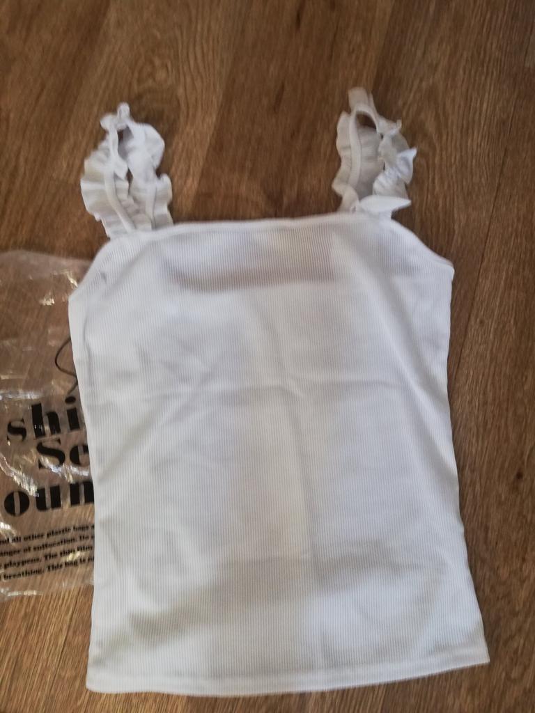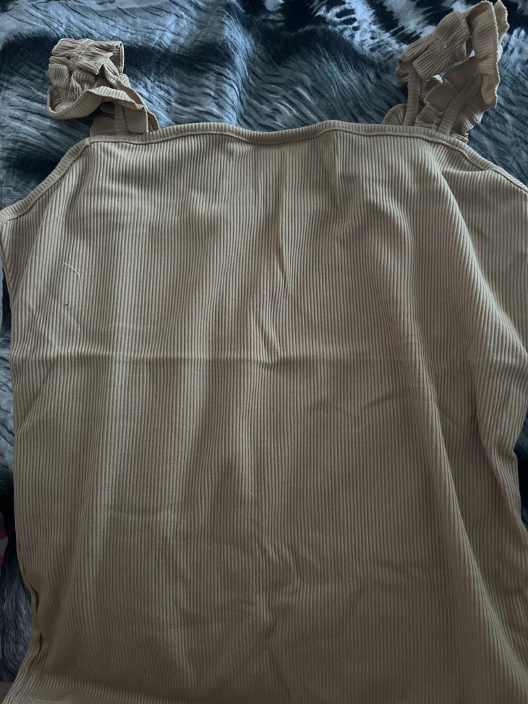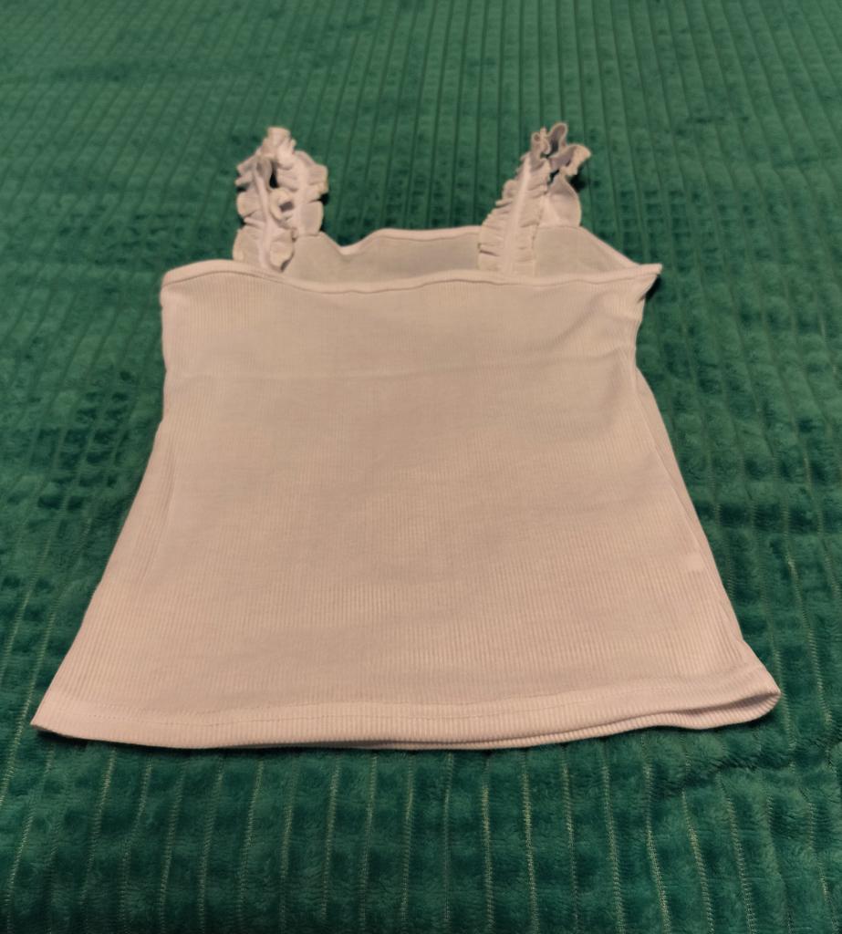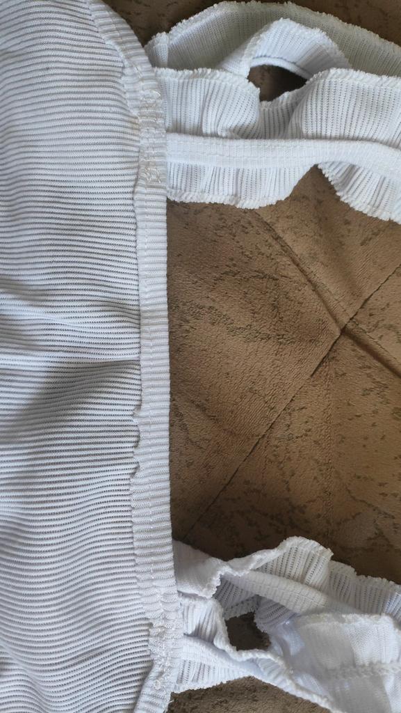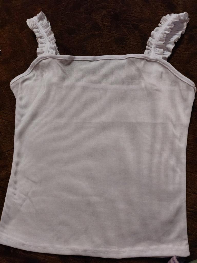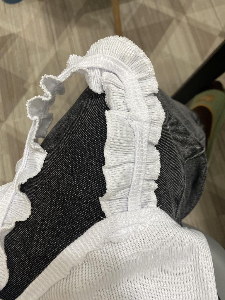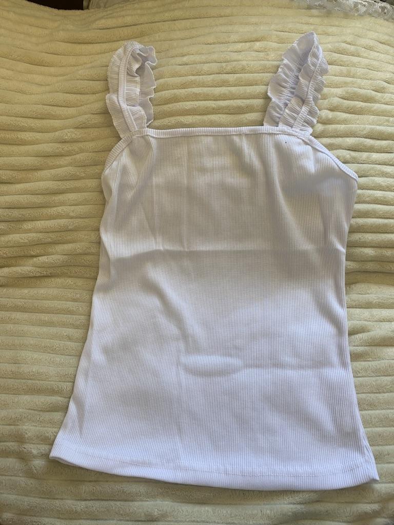 The top is completely different from the photo. The straps are terrible, thin, and threads are sticking out everywhere. Plus, the white top has some stains. Terrible product