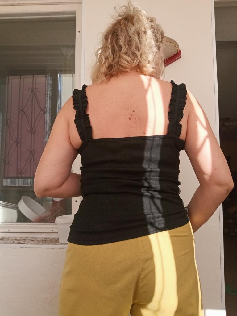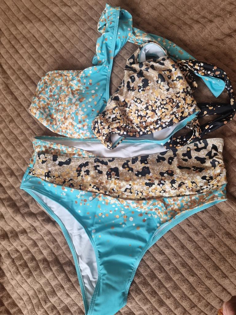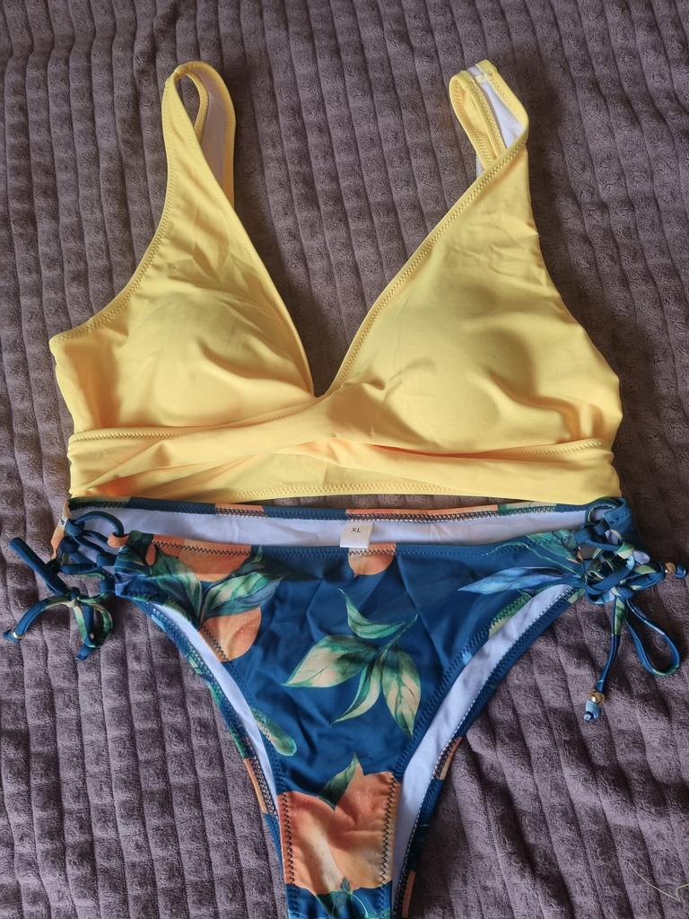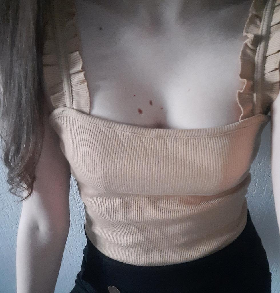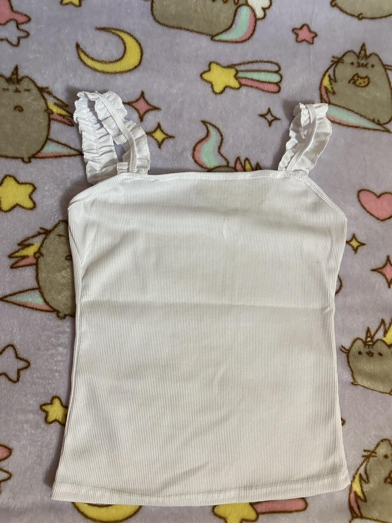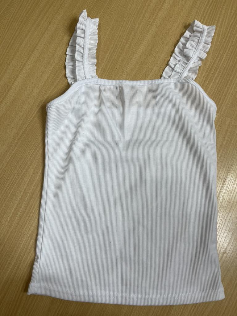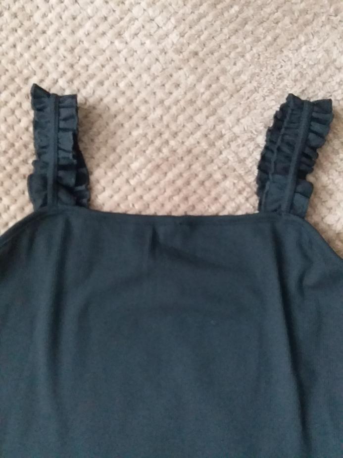 The top is completely different from the photo. The straps are terrible, thin, and threads are sticking out everywhere. Plus, the white top has some stains. Terrible product
