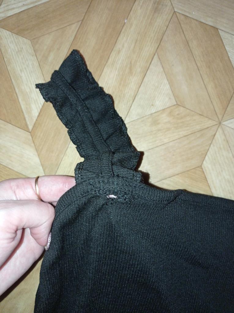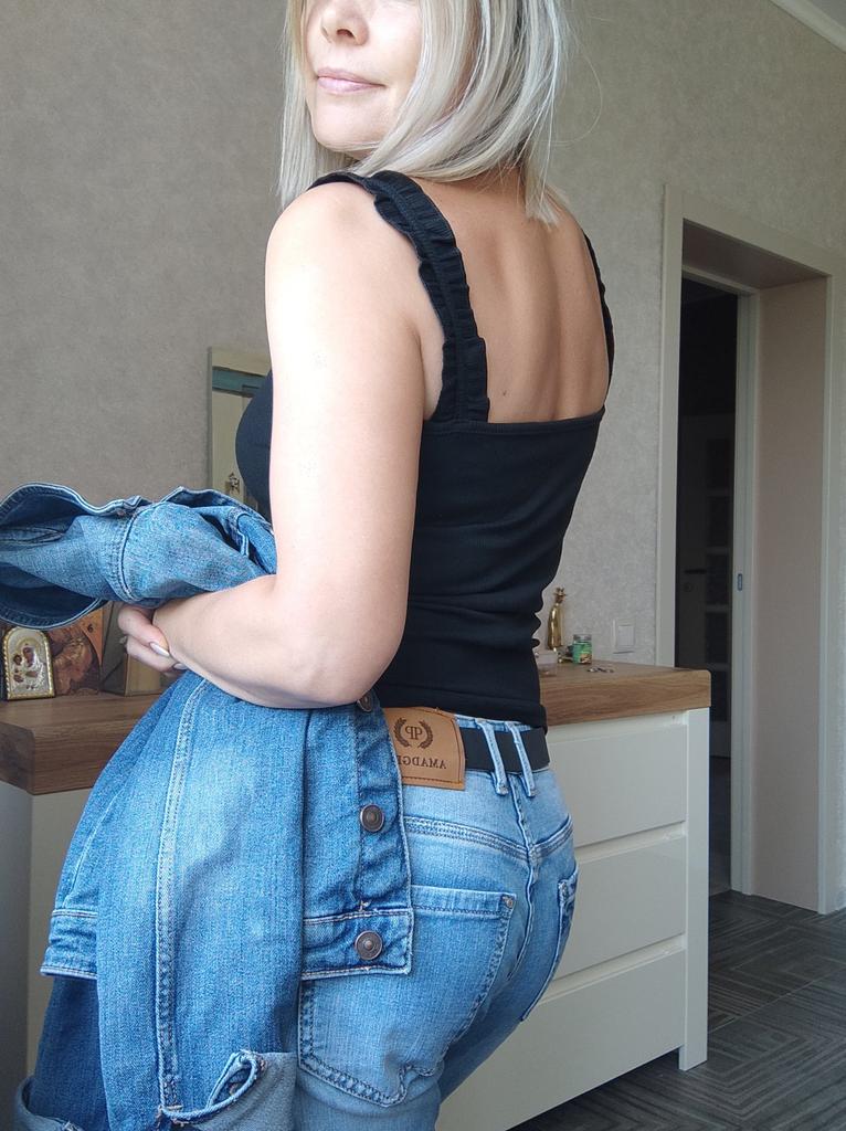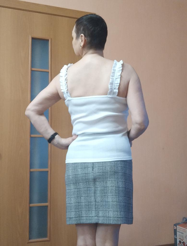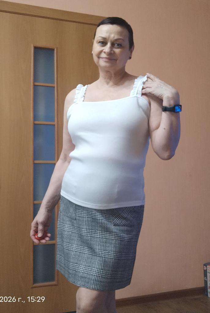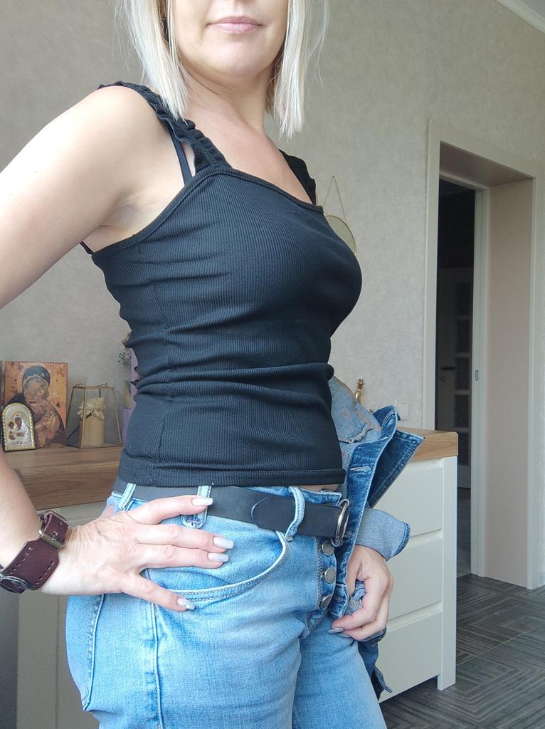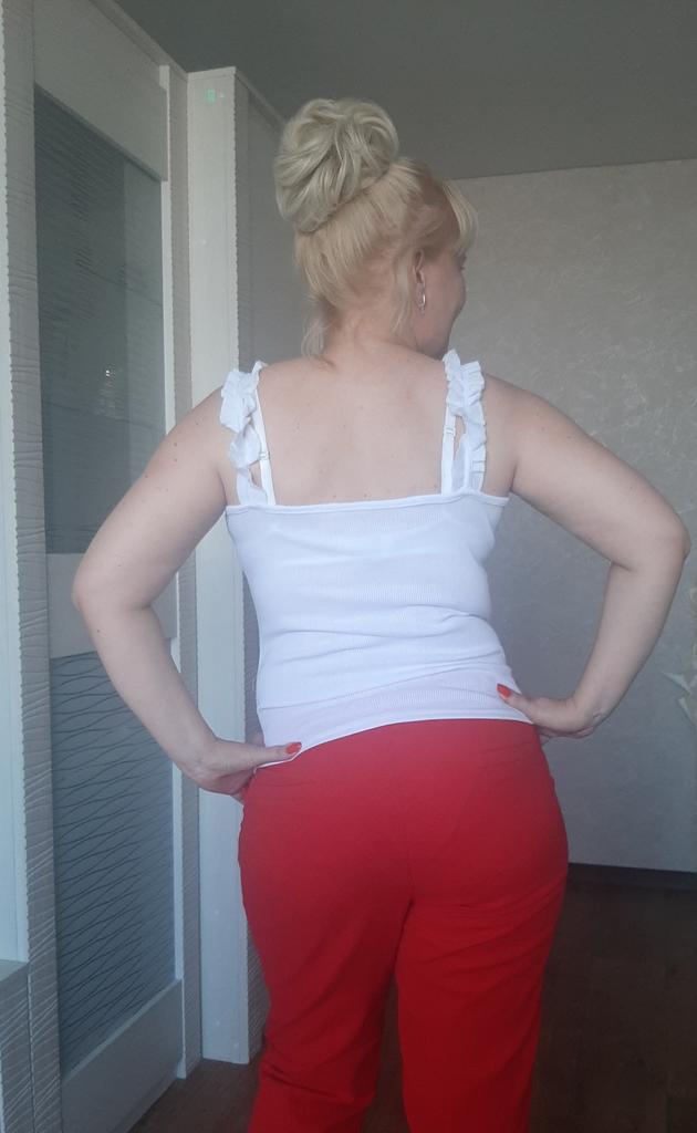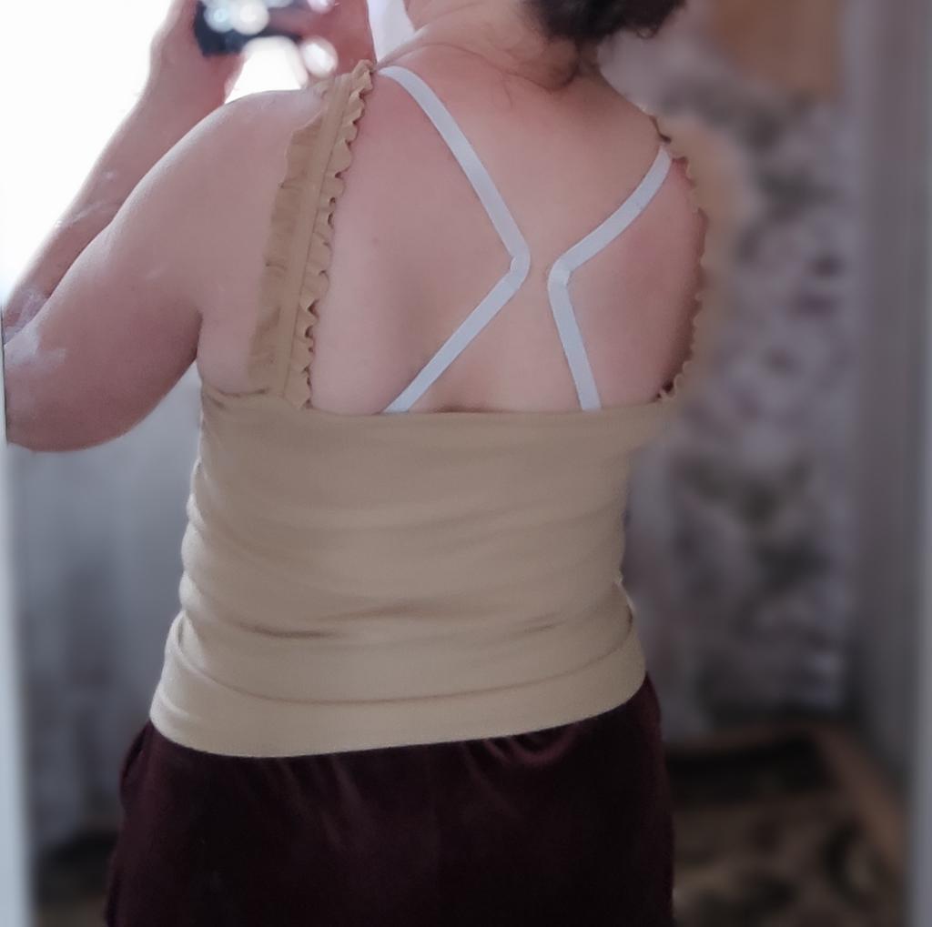 The size 44 fits well, but the straps are a little long, I'll think of something, the situation is not critical. The knitwear is dense, so it stays on without slipping, even though the straps are a little long. This lady looks good on the body.
