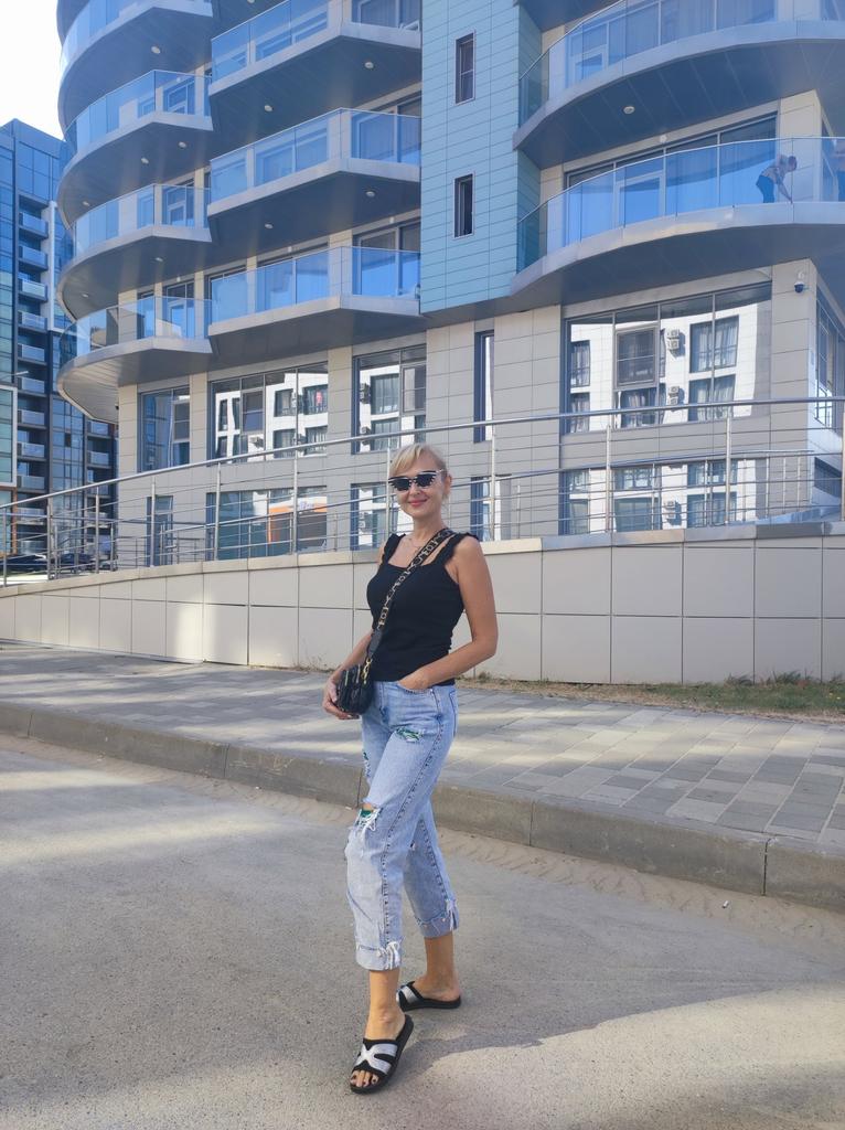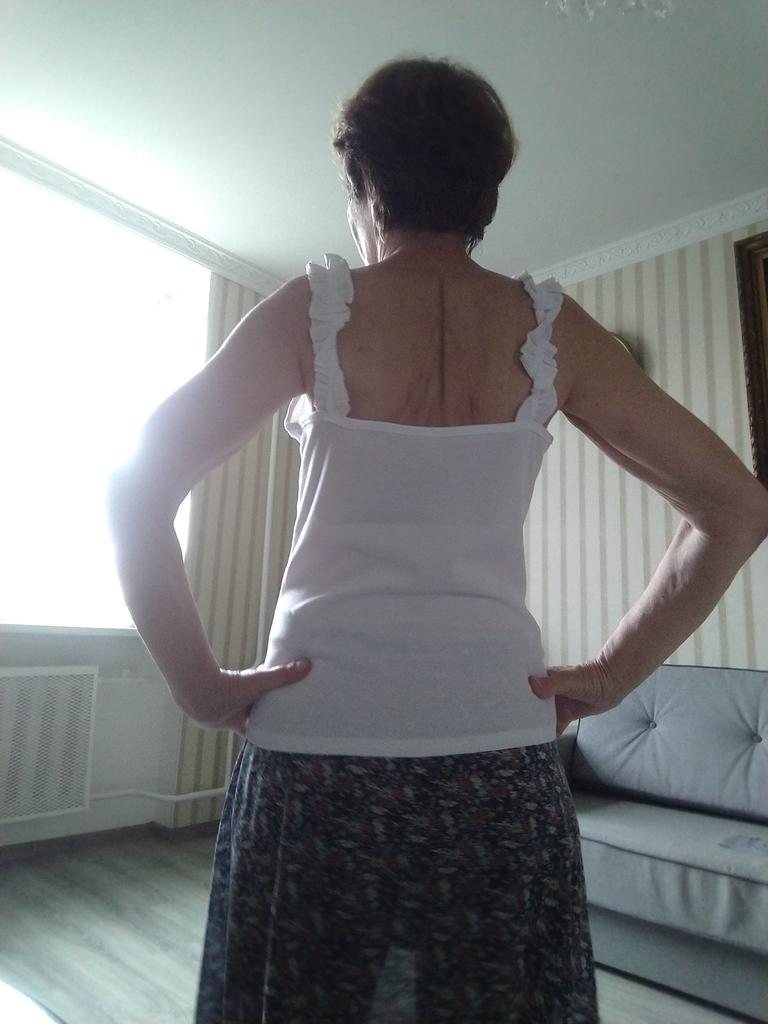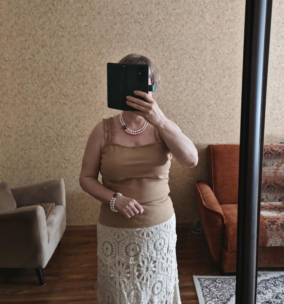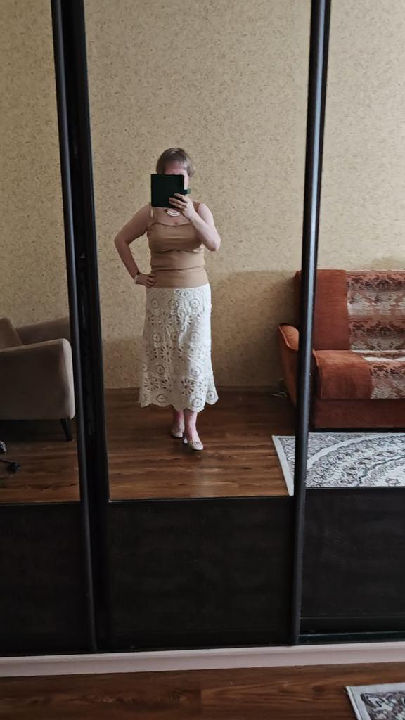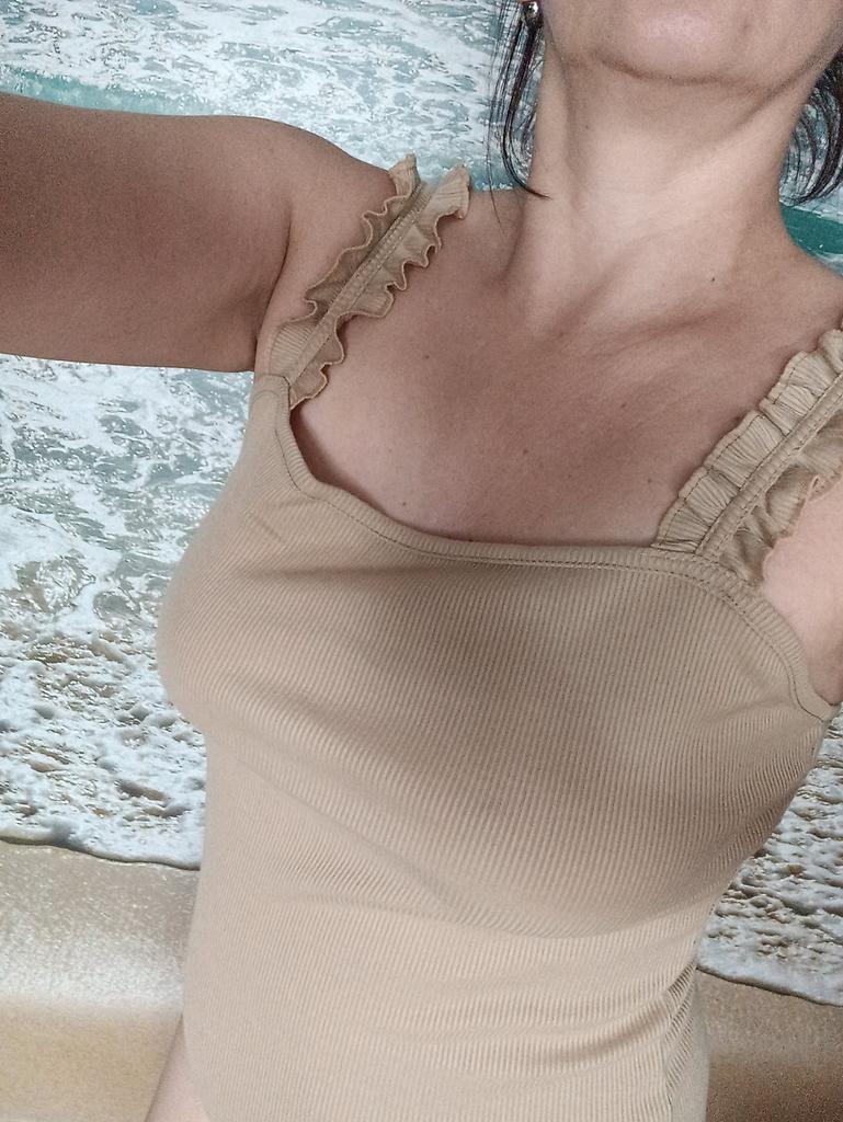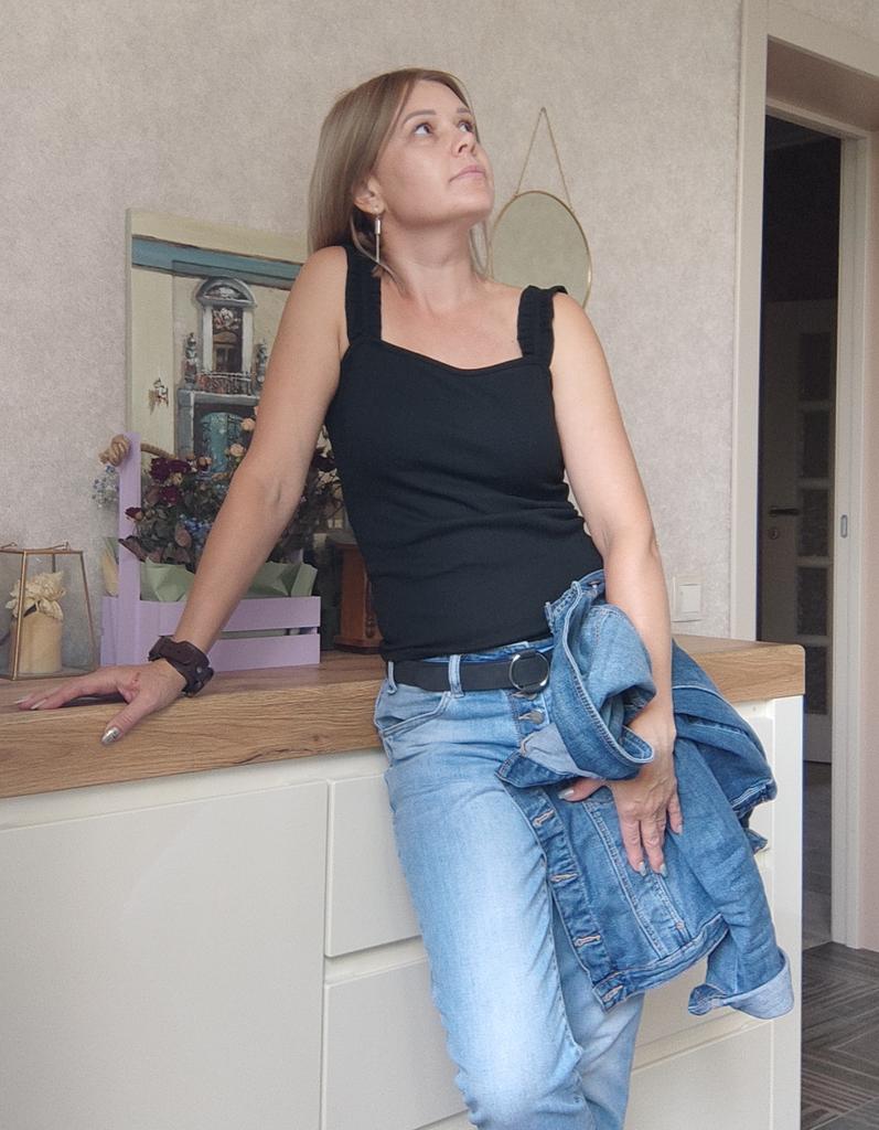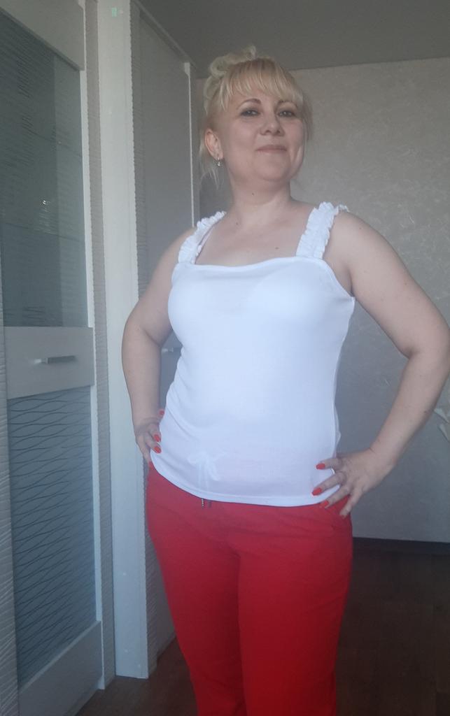 The size 44 fits well, but the straps are a little long, I'll think of something, the situation is not critical. The knitwear is dense, so it stays on without slipping, even though the straps are a little long. This lady looks good on the body.
