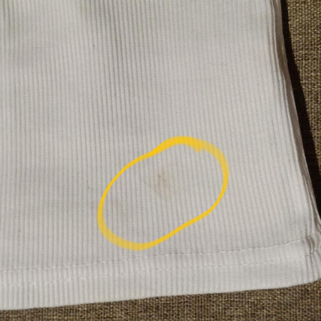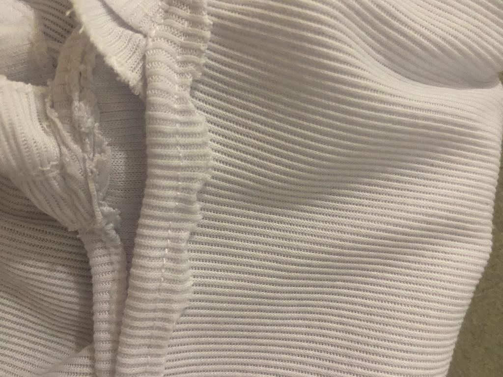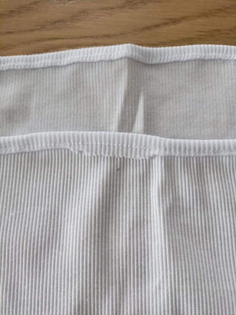 Ribbed T-shirt, the tailoring leaves much to be desired. The hole is in a visible place