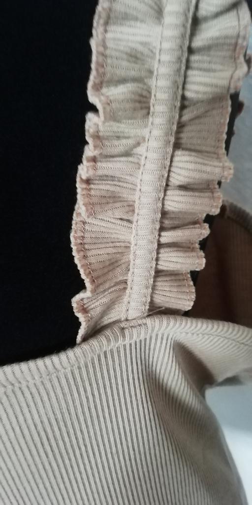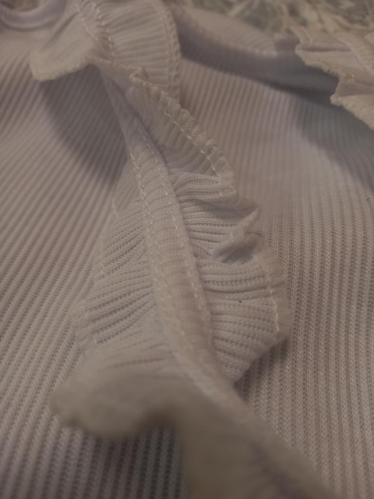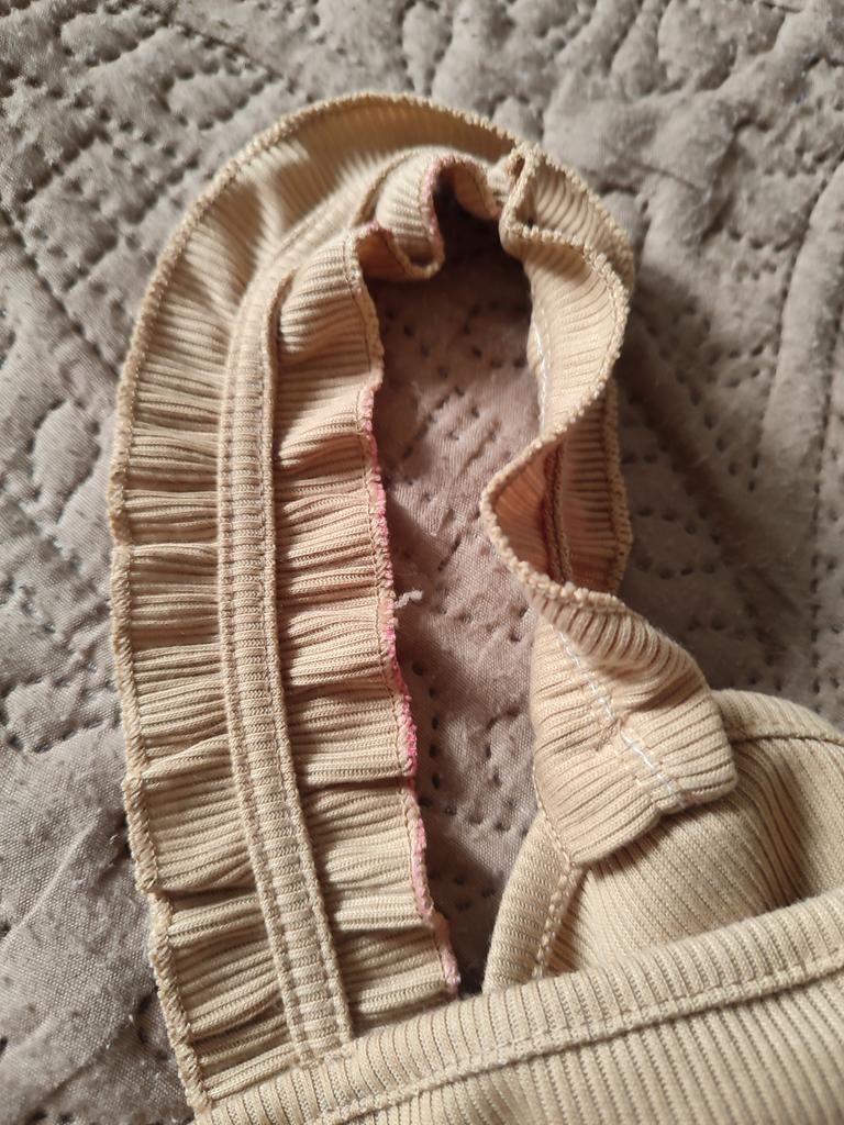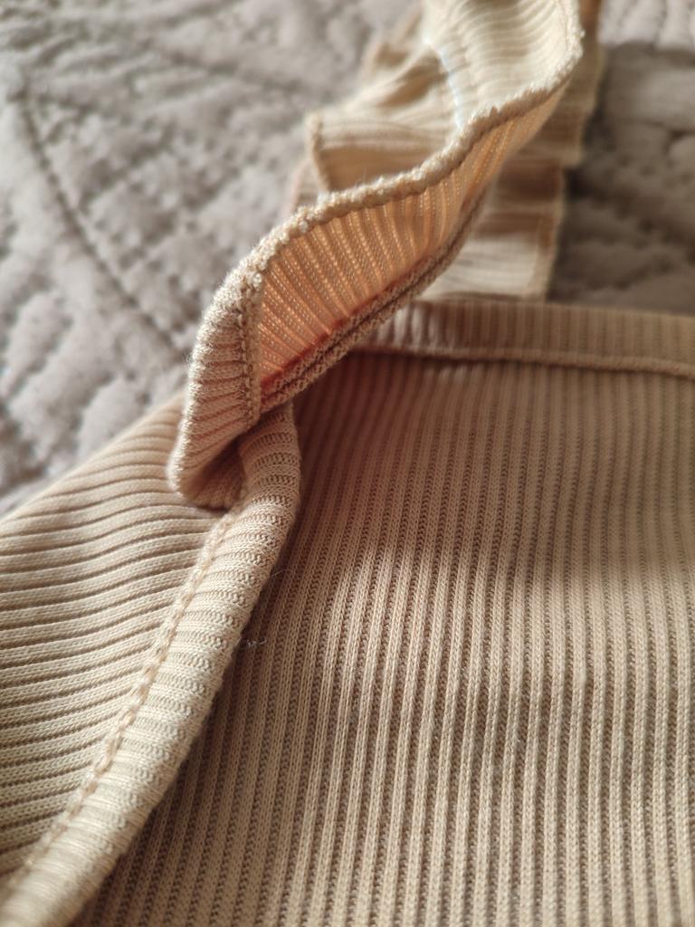 Fun design. It suits a specific skirt with ruffles. Material cotton knit