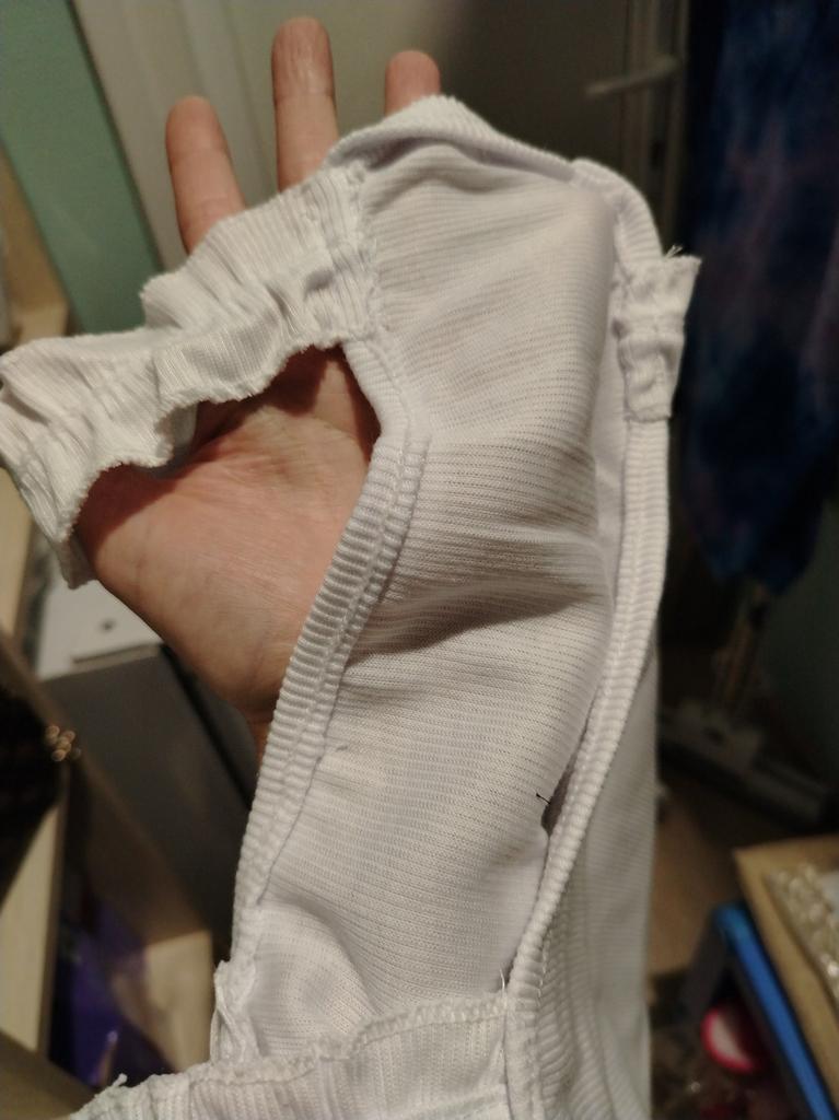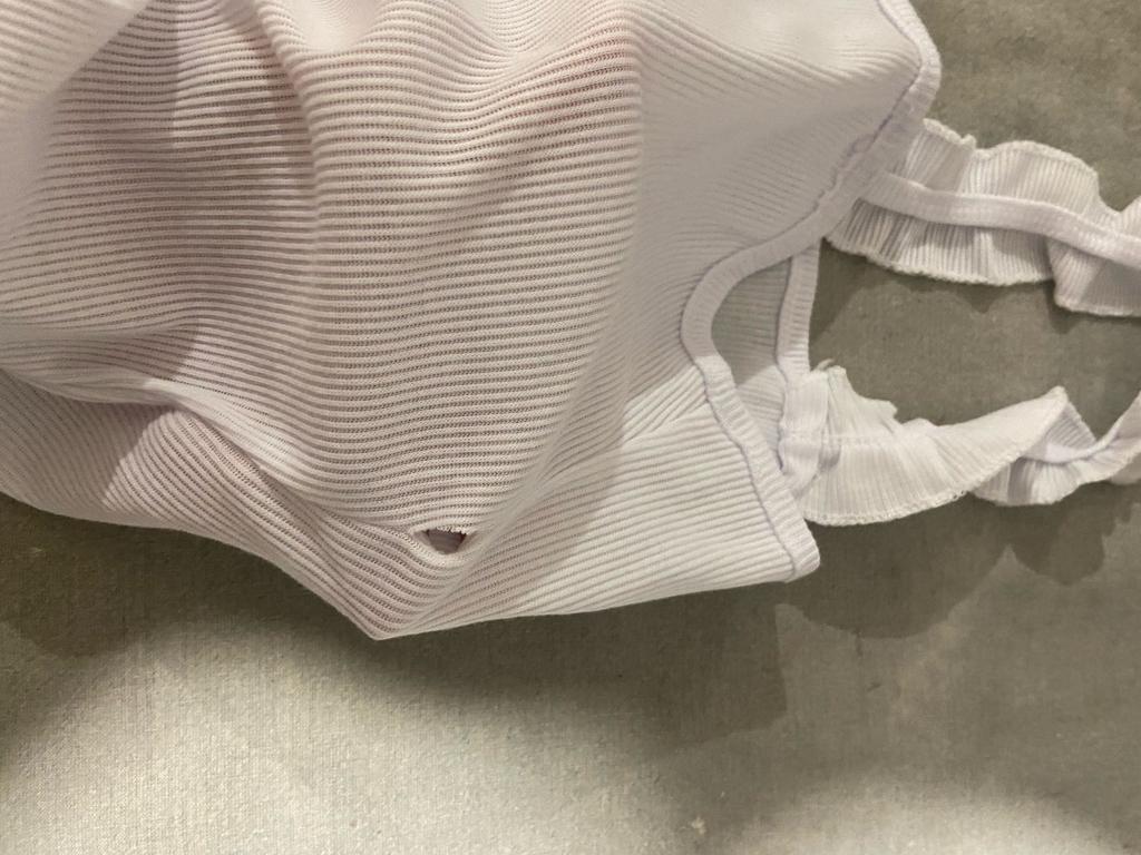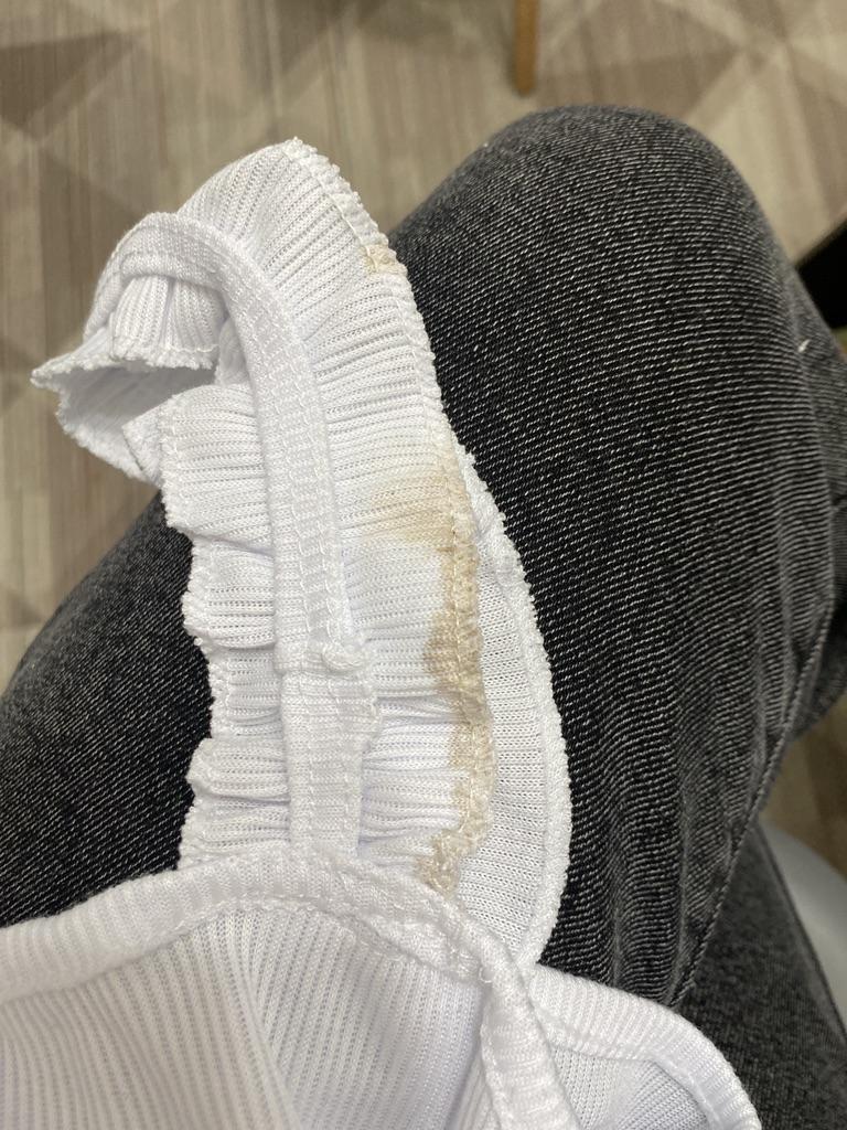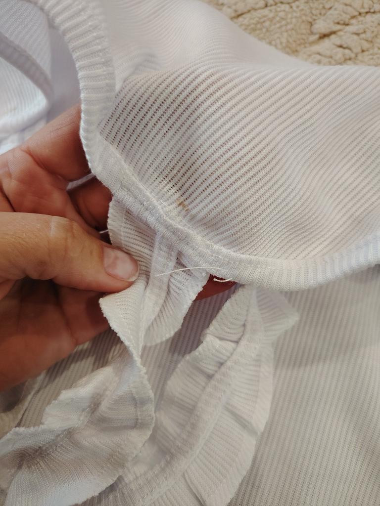 The top edge of the top is stretched. It's visible. The mood is ruined.