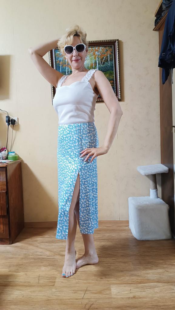Thank you, I have several of these S sizes, 170\90-67-94, in different colors, I will wear them in the summer; the fabric is dense, the style is "not hot", the thing keeps its shape.