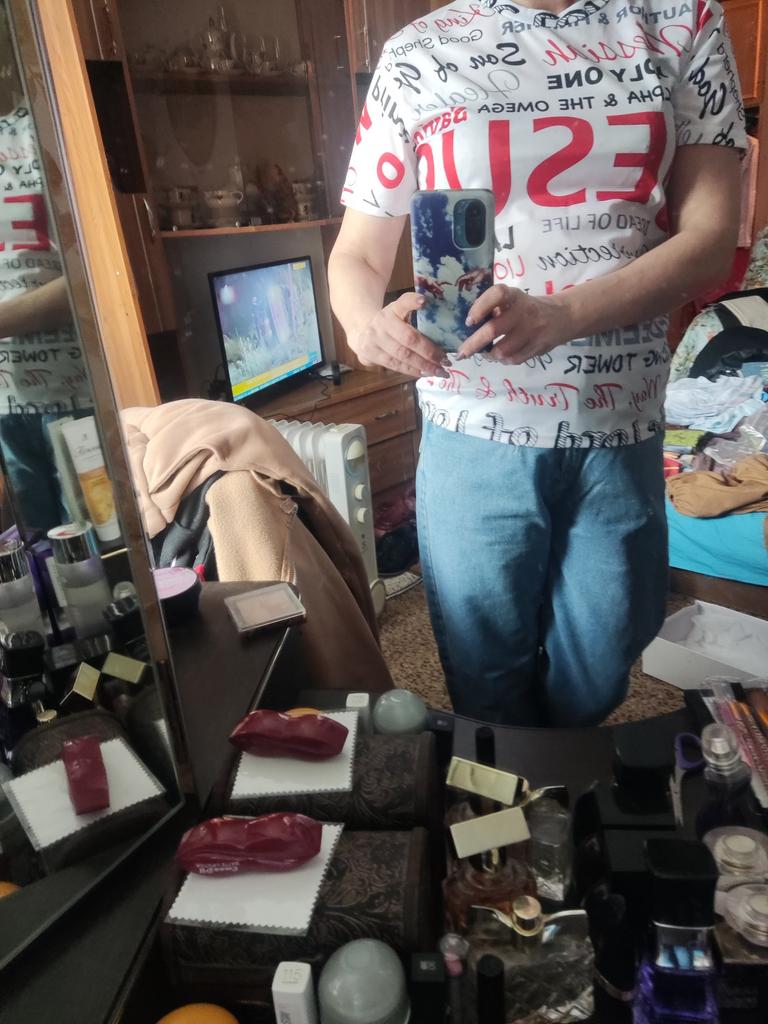 I'm happy with the T-shirt, although it looks more like a blouse. The quality, color, style suits me. Fits my size 52-54 well.