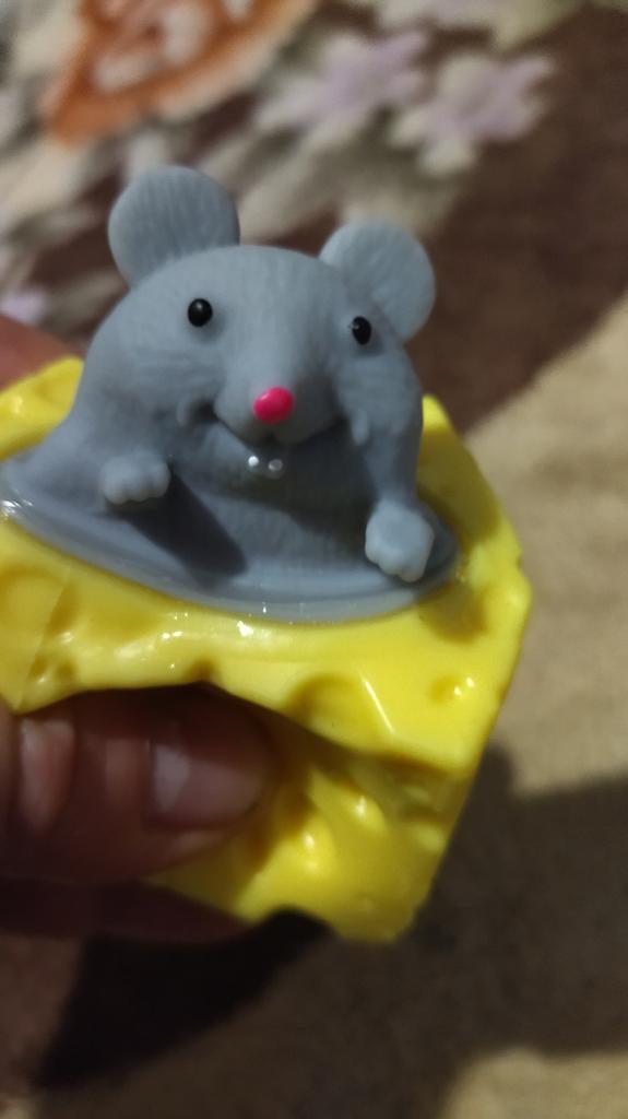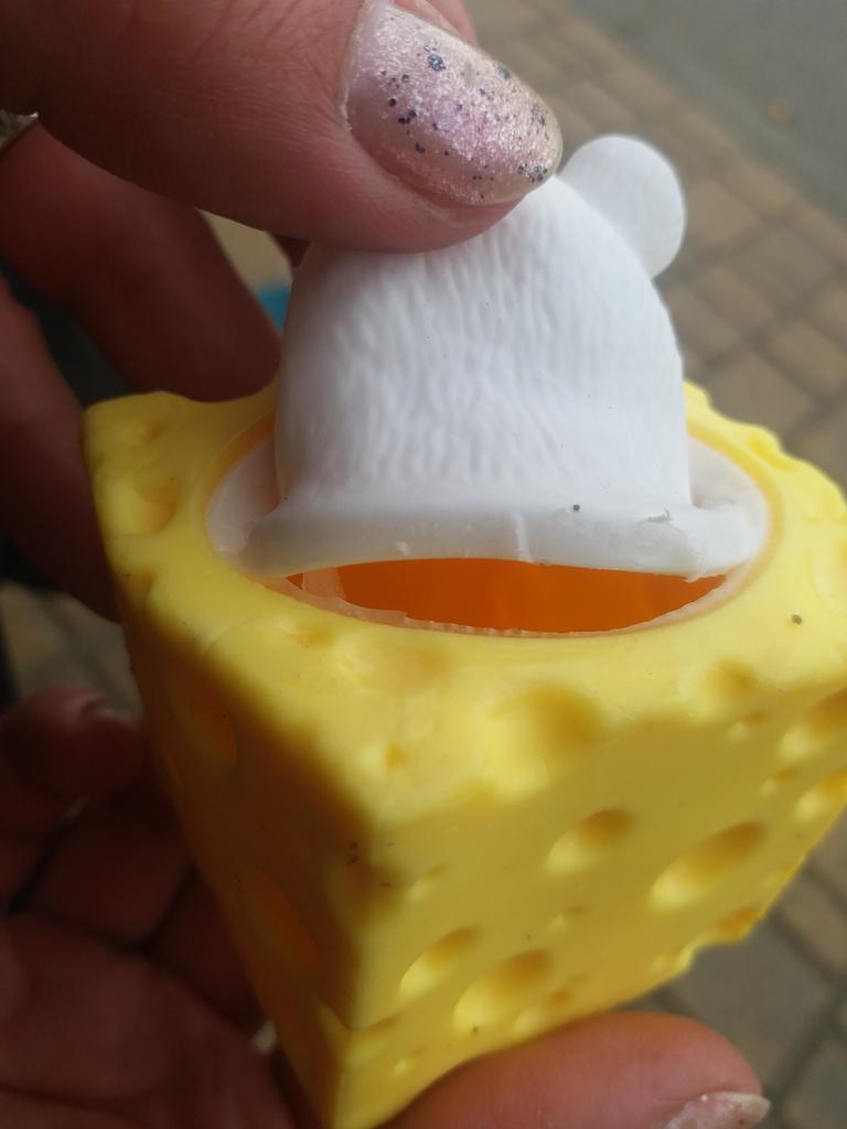 It arrived unpeeled, the mouse does not come out when you squeeze the cheese (((