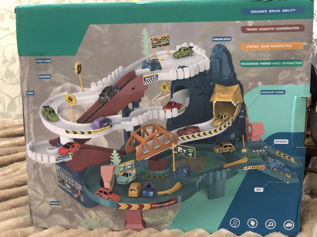 Dinosaur Railway Track Car Toy Dino Adventure Curved Road Track Electric Rail Vehicle Kids Boys Interaction Games Birthday Gifts