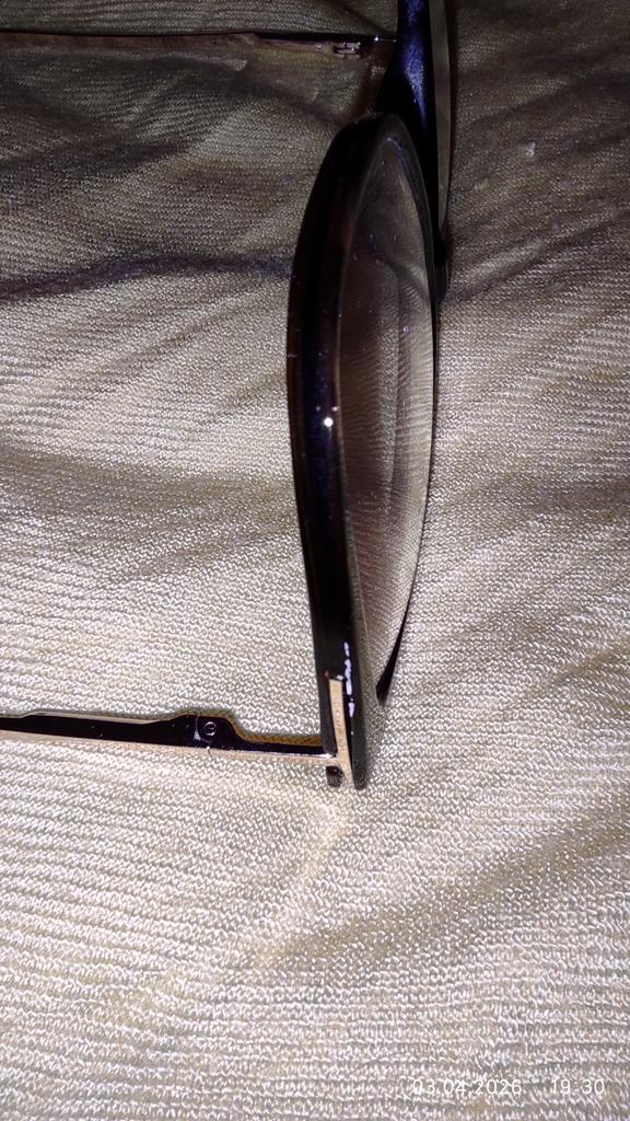 There is a scratch on the eyeglass frame.