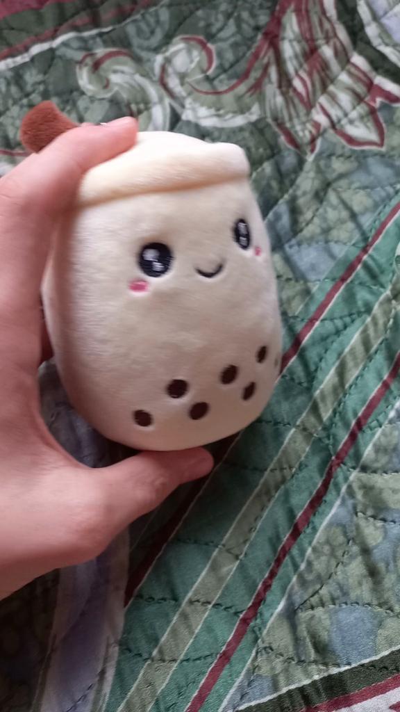 Handmade and finely sewn milk tea plush doll with even filling, ensuring no deformation and allowing for easy squeezing.