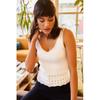Women's White Six Hole Front Back V Summer Knitwear Blouse