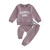 Baby Girls 2-piece Outfit, Letters Print Long Sleeve Crew Neck Sweatshirt with Elastic Waist Sweatpants Fall Clothes