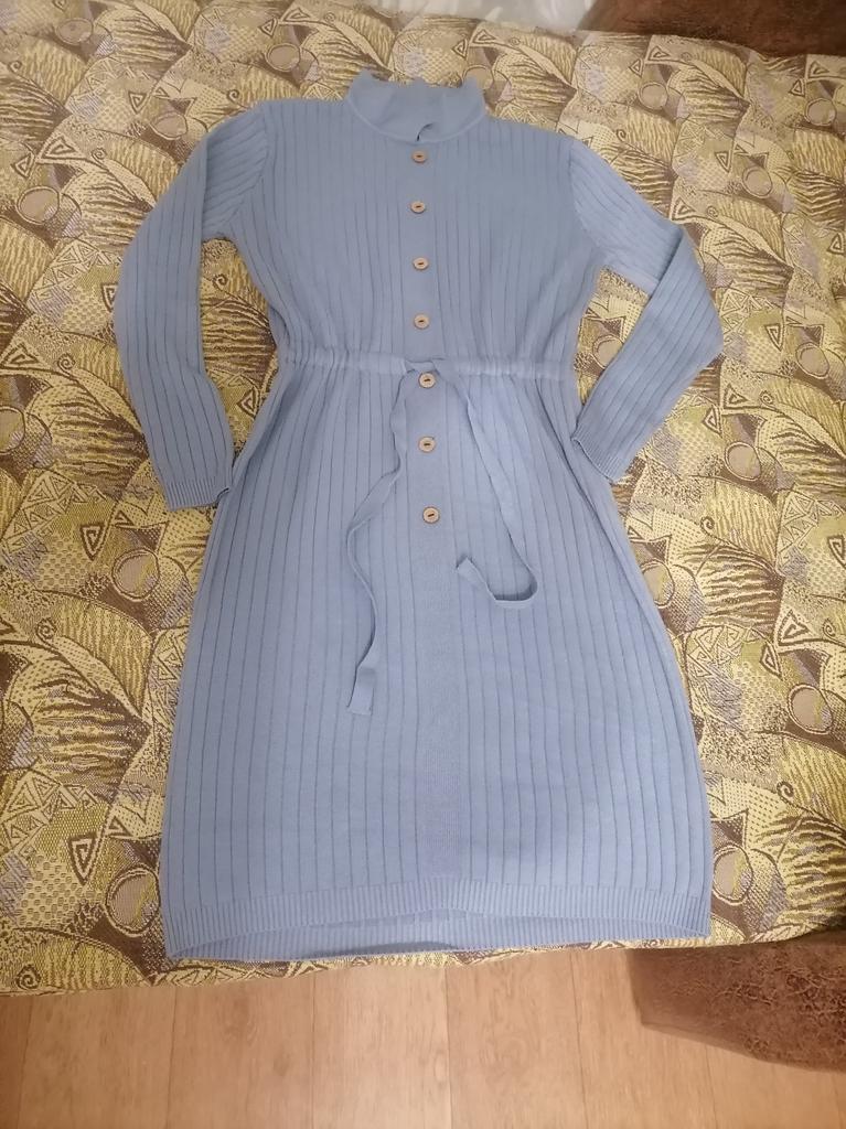 The color is brighter than in the photo, truly sky blue. A good, warm dress. A pleasant bonus - hair ties, they hold well, don't slip.