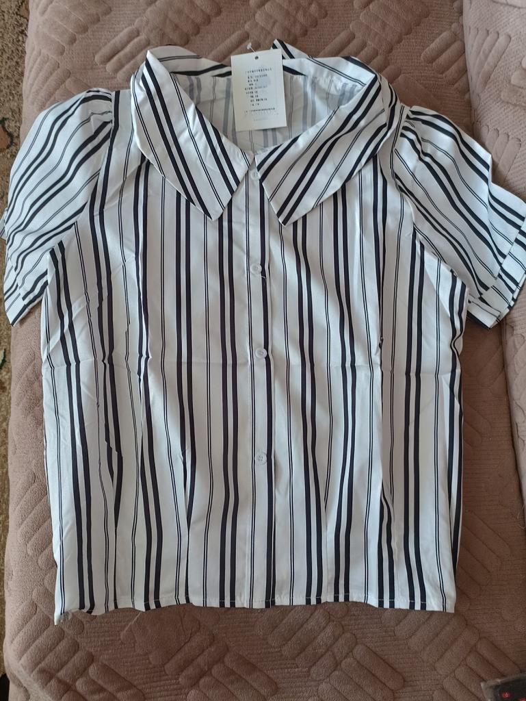 Korean Version Striped Shirt Short Sleeved Short Doll Neck Bottoming Blouse Summer New Top M-3XL