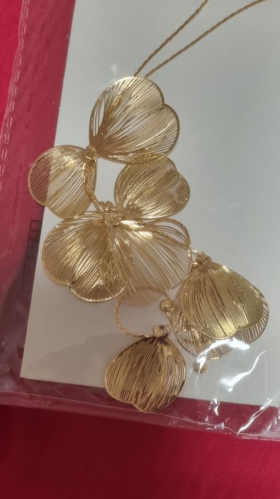Fascinating fragility. Necklace in the form of connected petals. The petals are very thin, fragile and light. They are attached from double to single. The necklace looks elegant. The necklace has an extension chain. The purchase is charming. Be happy.