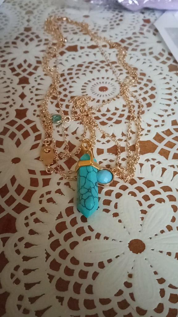 Multilayer Women's Necklace Natural Turquoise Crystal Combination Pendant