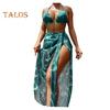 This three-piece swimsuit set includes a swimsuit, swimming trunks, and a skirt. The sexy and elegant split swimsuit can better modify and show off your figure.