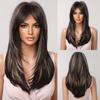 HAIRCUBE Long Wavy Brown To Blonde Omber for Women Layered Synthetic Wig with Bangs Natural Christmas Party Heat Resistant Fiber
