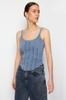 Women's Fashion Blouse Square Neck Short Indigo Embroidery Balloon Sleeve Woven Blouse