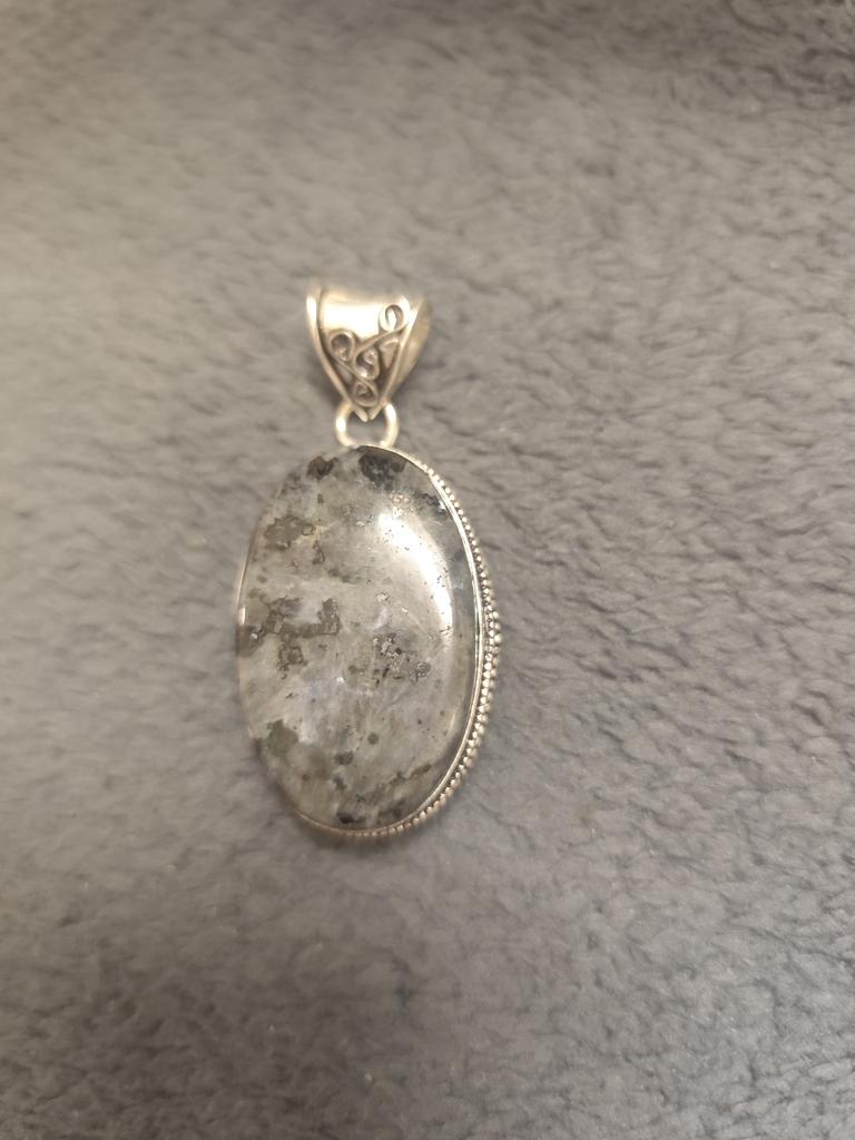 Natural Larvikite Stone Gemstone Handmade 925 Sterling Silver Pendant 2.25" W8i44