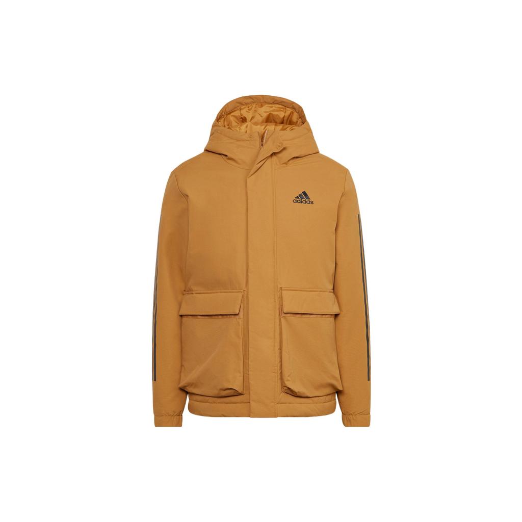 Adidas Striped Logo Print Zip-Up Cotton Hoodie Men Outerwear Yellow HG8723
