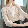 Lace Bottom Shirt for Women Straight Neckline Hollow Out Blouse Sexy Three Quarter Sleeve T-shirt