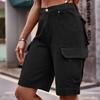 5Colors 2XL Women's Fashion Casual Solid Color Washed Denim Multi-Pocket Belt Overalls Five-Point Shorts
