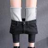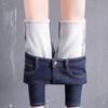 Fashion Women Plus Size Plus Velvet Elastic High Waist Casual Jeans Pencil Pants