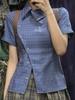 Aesthetic Vintage Retro Plaid Shirts Women Y2k Summer Single Breasted Office Blouses Female Korean Casual Slim Streetwear Tops