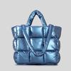 Fashion Plaid Padded Tote Bag Designer Soft Puffy Women Handbags Luxury Down Cotton Shoulder Bags Warm Winter Female Purse