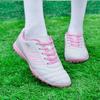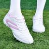 These children's football shoes are designed for young athletes, featuring a vibrant pink spikes design suitable for both training sessions and matches. The shoes offer a comfortable fit with a mesh lining that allows breathability, ensuring kids' feet stay cool and dry. The durable PVC upper material provides excellent support and longevity, making them ideal for active youngsters. Additionally, the rubber sole delivers superior traction and stability on the field, enhancing performance and safety. Perfect for both boys and girls, these shoes are a great choice for young football enthusiasts.