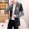 Men V-neck Business Suit Stitching Color Buttons Coat Casual Slim Windbreaker Trend Parka Spring & Fall