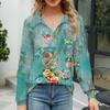 Women's Loose Casual Floral Print V-Neck Long Sleeve Neckline Pocket Waist Shirt