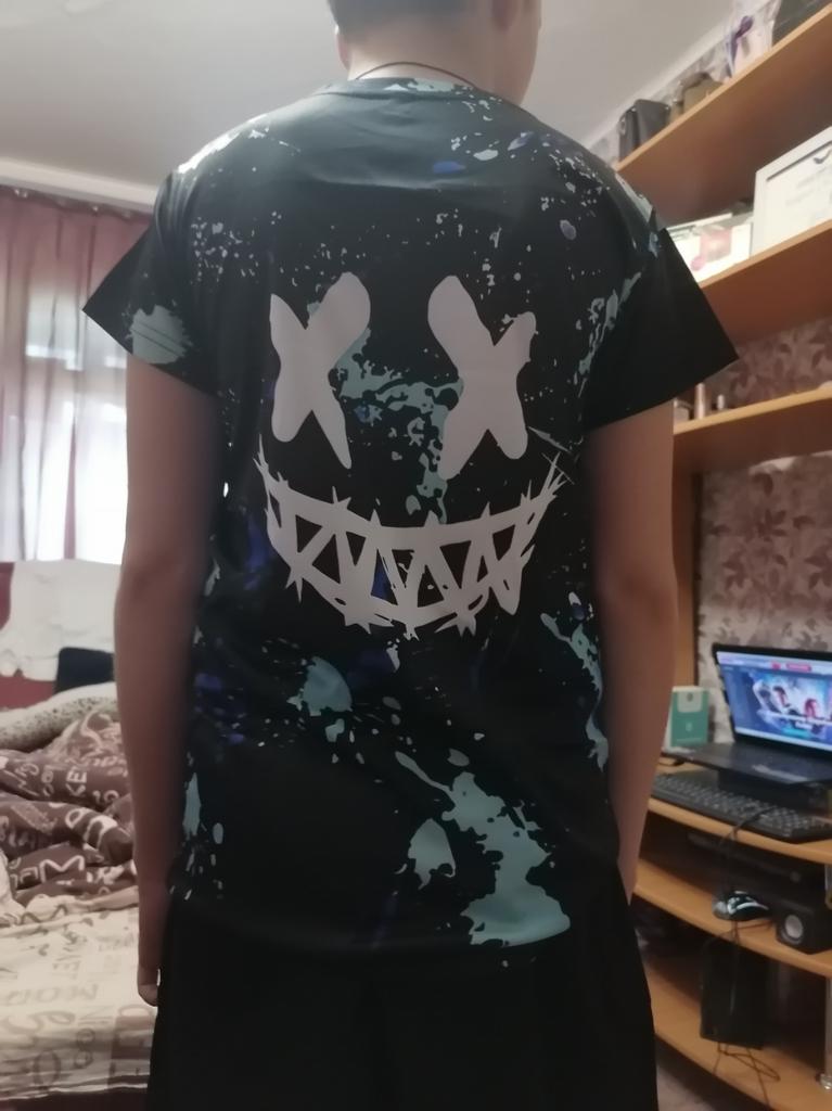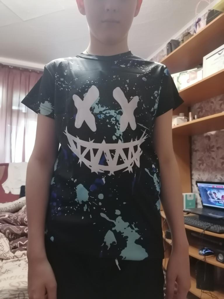 SHEIN Young Boys' Casual Comfortable Night Glow Inkjet Color Pattern Short Sleeve T-Shirt