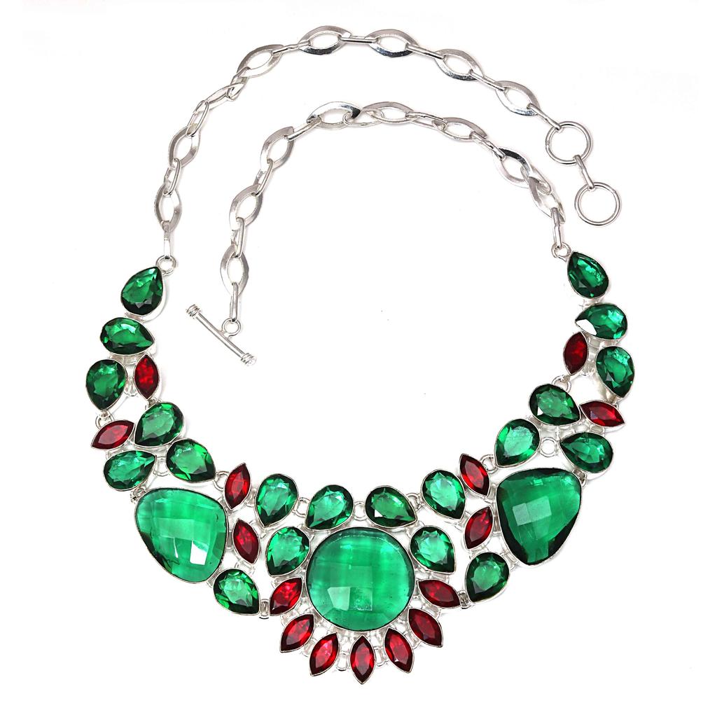 Necklace Emerald Quartz GarnetGemstone Women'Unisex Jewelry 18-20''