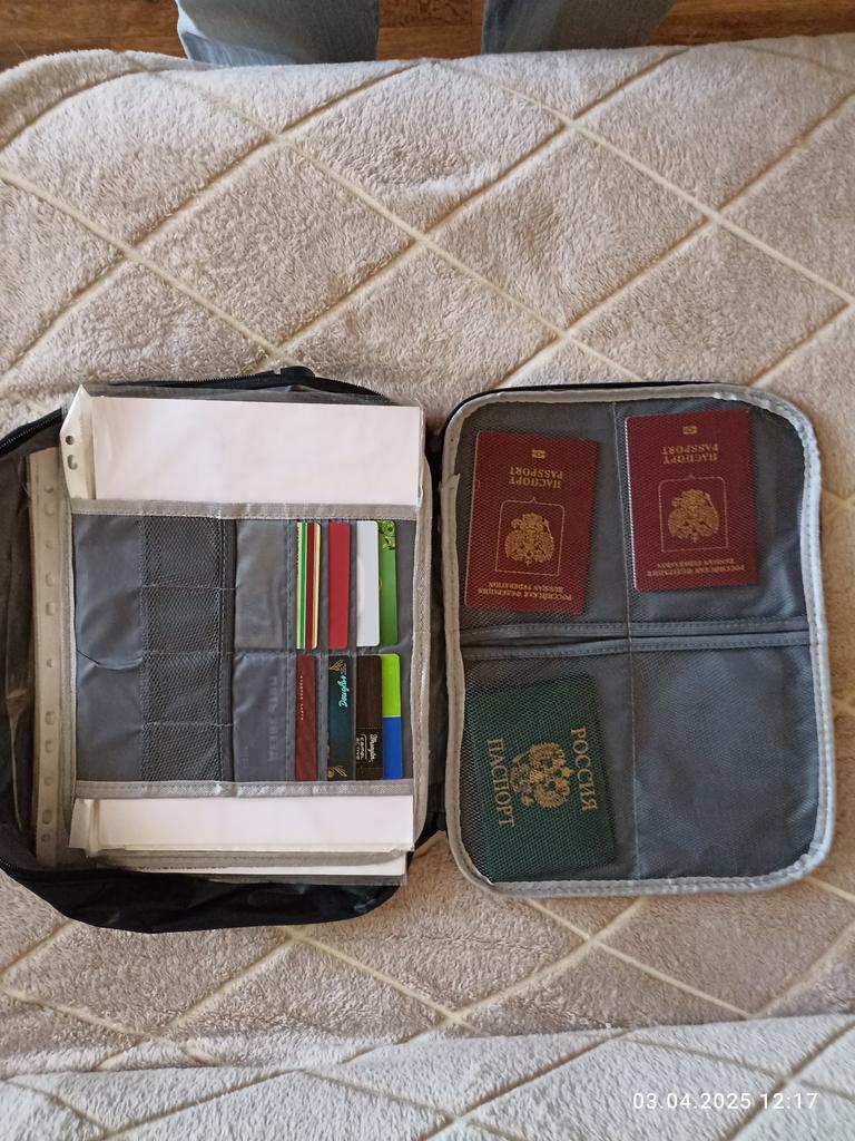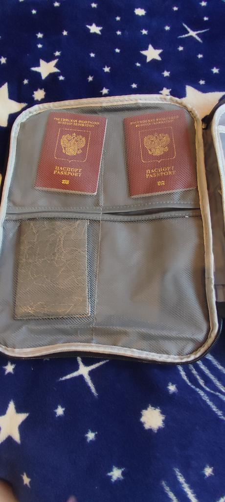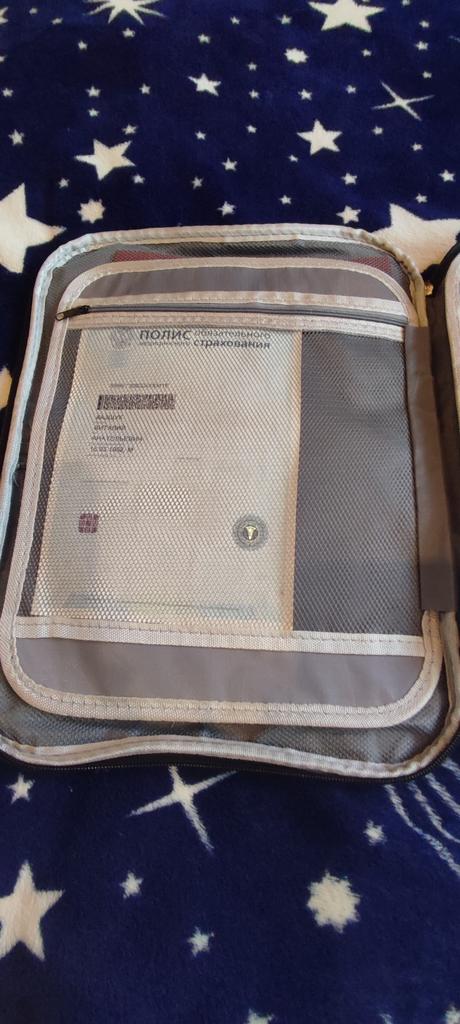 I'm ordering for the second time. I took the gray one for myself. My parents also wanted it. I decided to order the blue one. I liked the blue one even more. Although it's sewn so-so - it's crooked here and there, there's thread there. But it doesn't affect the functionality. All the documents, medical cards, etc. fit in.. Unfortunately, there is only 1 zippered pocket. Otherwise, it is a nice organizer. Soft, so you can put it in a suitcase or backpack.