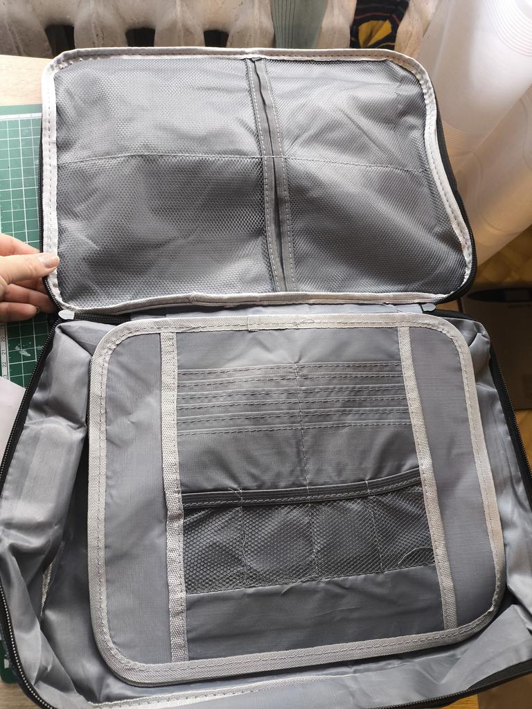 I bought the case as an emergency briefcase for documents of various formats. The quality is good, there are many different compartments. Everything fit