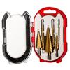 6-Piece Serrated High-Speed Steel Pagoda Drill Bit Set In Plastic Box – Ideal for Hole Opening, Expansion, and Step Drilling.