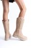 Women Modern Stylish Fashion Boots Boots Faux Leather Tan Matte Embroidered Zipper Western Cowboy Boots