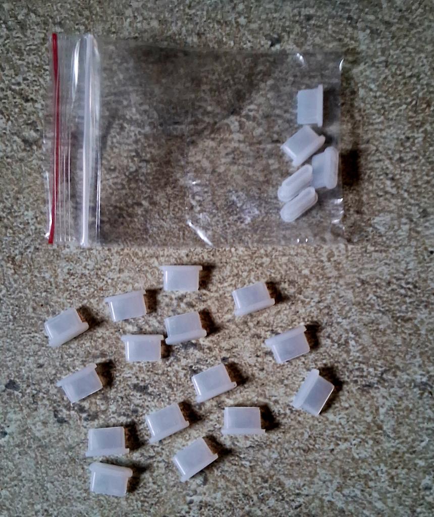 The plugs are soft, silicone, protect against dust, but are also easy to lose if you accidentally pry them off the Type-C connector with your finger.
