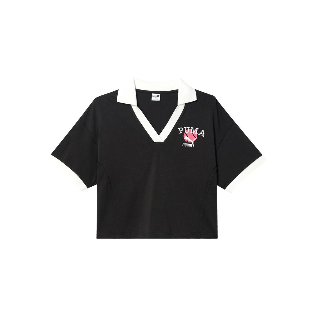 Puma Letter Print Breathable Short Sleeve Polo Shirt Women Tops Black 622971-01