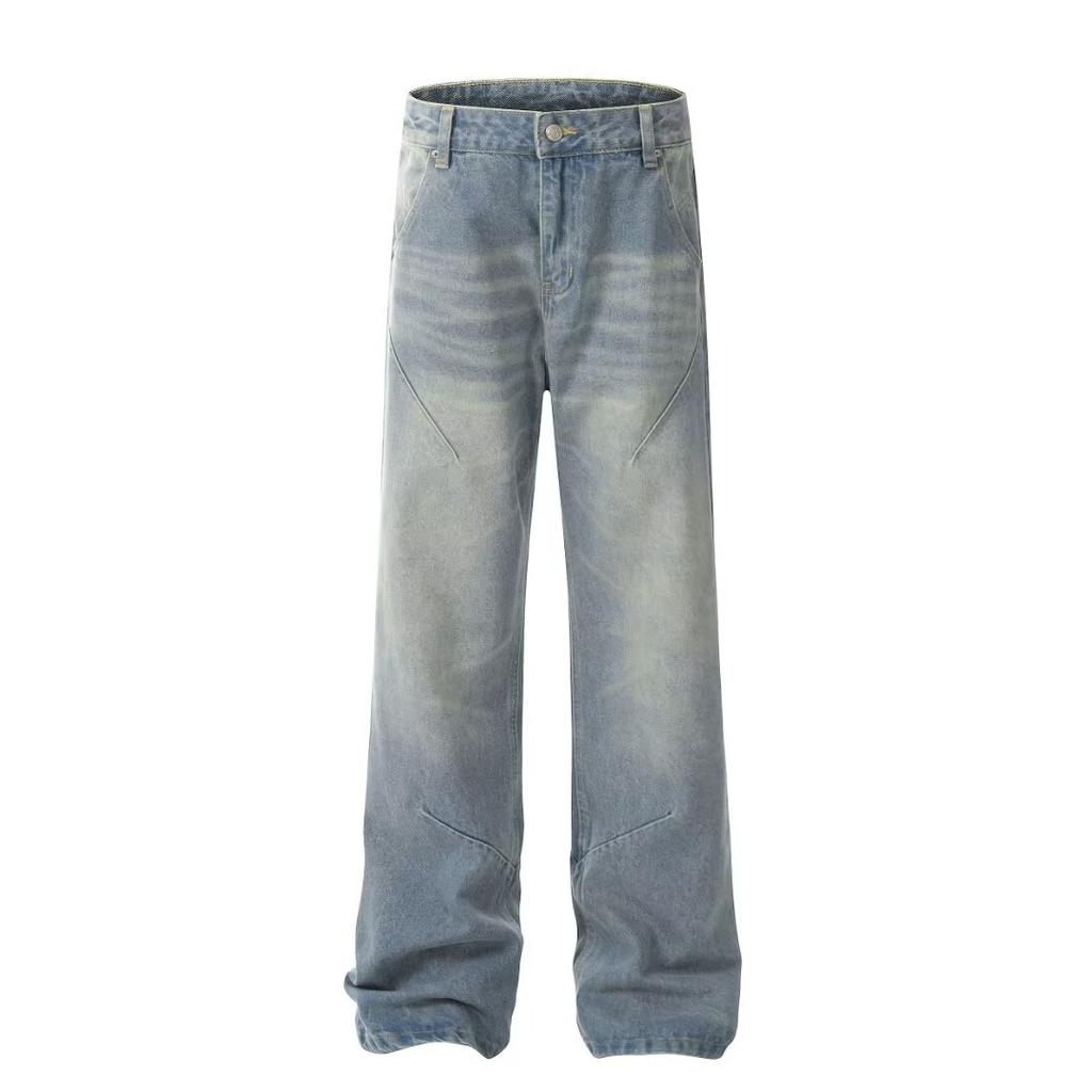 Autumn And Winter New American High Street Washed Light Colored Jeans For Men And Women Straight Leg Slightly Flared Loose Wide Leg Pants