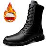 Safety Trekking Moto Shoes Winter Long Leather Riding High Top Plush Lace Up Motorized Boots Men’s Outdoor Cowhide Boots Dermis