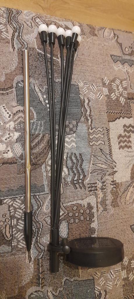 The solar battery works well, the tube on which the structure stands arrived slightly bent, but we were able to straighten it. The colors are different, there are only 6 bulbs on one bush, keep this in mind when ordering! The white shades are screwed onto the black base, which holds them there well. The solar element is large, size 8*7*2 cm. There is a chemical smell from the black wires on which the shades are screwed. On the back of the solar element there is an ON/OFF button. There are traces of glue or plastic on the shades