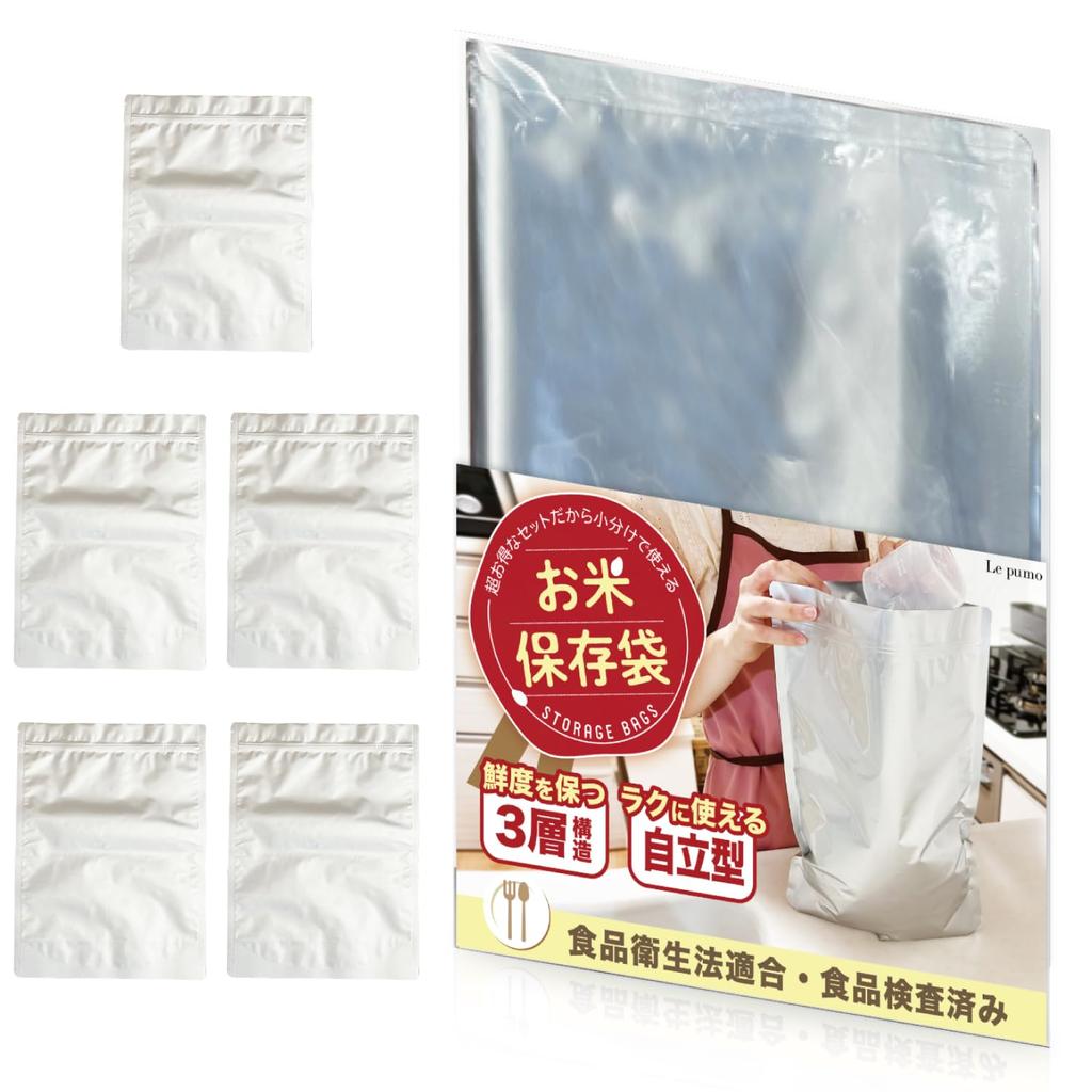 Le Pumo Rice Storage Rice Rice Zipper Storage Aluminum Rice with Light Convenient Washable 5kg of 5 Bag, Bag, Airtight, Pot, Included, Container, Bag,