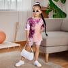 Girls Casual Printed Short Sleeve Suit Round Neck Short Sleeve T-shirt Suit Suitable for 1-8 Years Old Children Fashion Suit