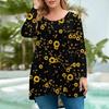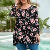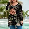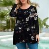 Women's Fashion Large Size Round Neck Long Sleeve Casual Print Loose Pullover Top
