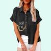 Plus Size Women Fashion Print T-shirt Summer&autumn Casual Linen Buttoned Shirt Ladies Loose Short Sleeved Blouse