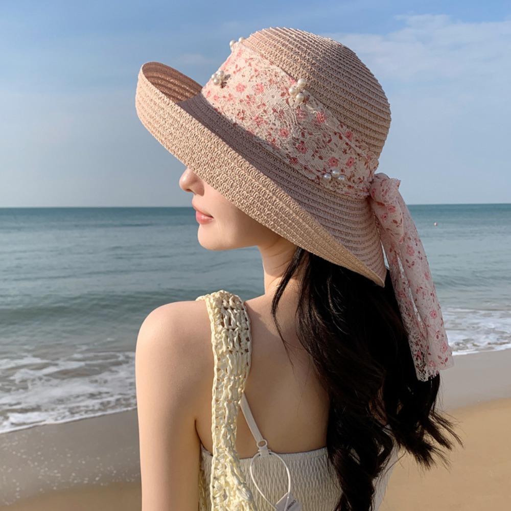 Lace Bowknot Sun Hat Large Brim Beach Hat Sweet Straw Hat Women