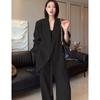 Spring Plus Size Women's Korean-Style Suit: Mid-Length Jacket and Wide-Leg Pants Set